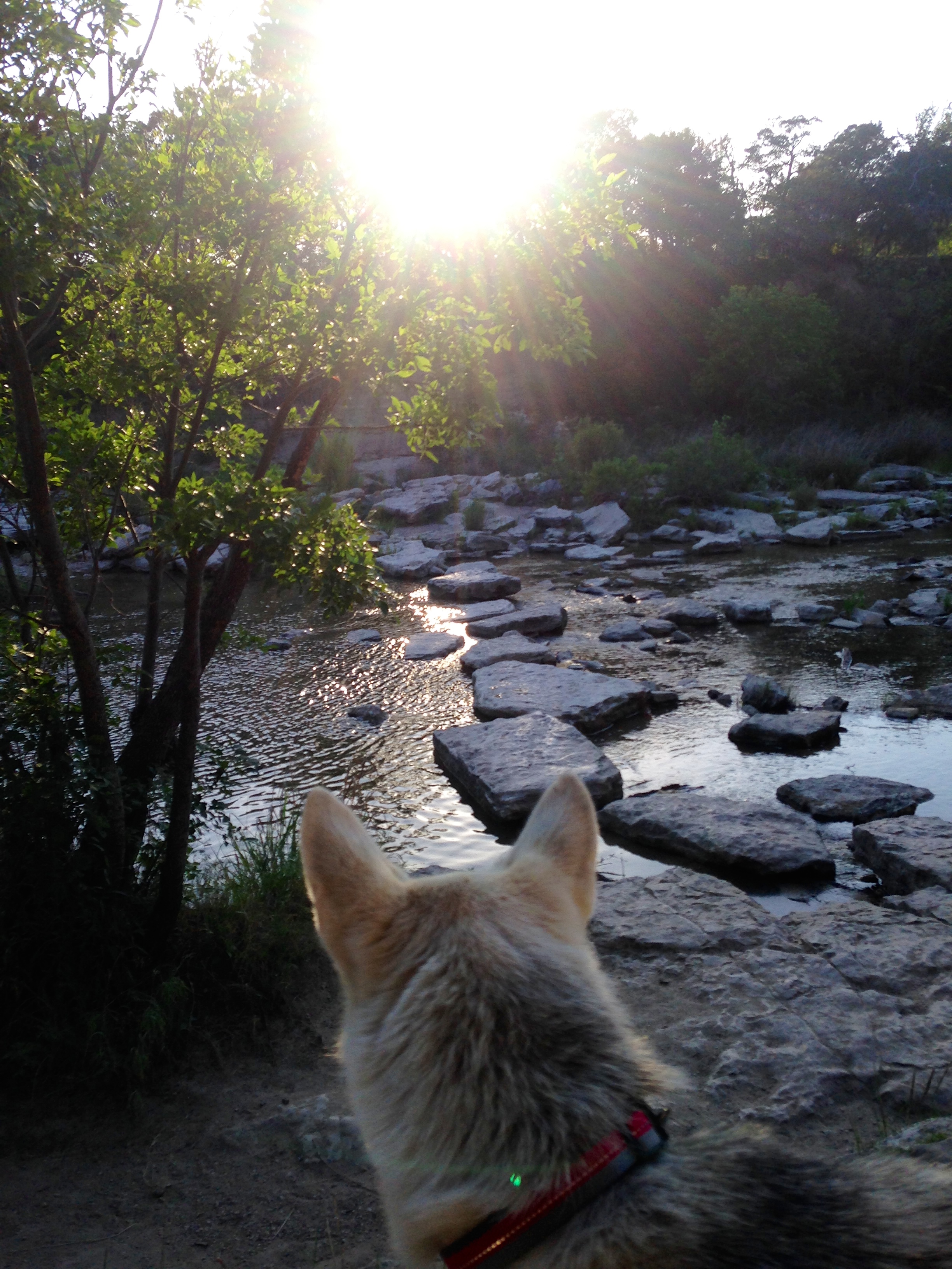 Aleu woke me up early yesterday with a paw in the face, followed by kisses to my ears and eyeballs. If she had been a man I would have given her a black eye but she is my dog so she gets away with more than any human in my circle ever would. It has been a few days since we hiked so I got the message and began planning our escape for the day. Escaping on a Tuesday is a wonderful thing because most of the rest of the world is working and at this point I don’t exactly have a real job, so we climbed in the Mini and headed southwest of the Fort Worth area to Glen Rose Texas! We had the trails almost exclusively to ourselves. The terrain varies from flat and easy to rocky and steep, so it is possible to fall off a cliff into the Paluxy River below, wear actual hiking shoes to help avoid this. The river was pretty low today so I was glad I was hiking and not kayaking because I would have still been hiking I would just be carrying a kayak instead of a backpack.