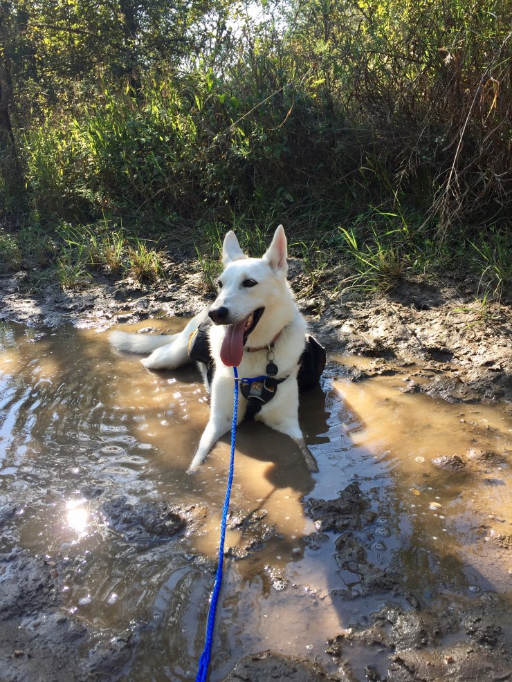 It was another fantastic day in Texas so I called Lake Mineral Wells State Park to check on the trail conditions and to my delight the back country trails were open for business.  Aleu and I made the drive to get some dirt under our nails and burn off some of her seemlessly never-ending energy.  I decided to try wearing one of those athletic skirts with the little shorts underneath and was pleasantly surprised how comfortable hiking like a lady could be, so if you are on the fence about hiking in a pink skirt I recommend you go for it!  The day was warm and sunny and the trails still had some mud for Aleu to enjoy and my Jeep seats to be adorned with.  I only saw one other hiker out there all day but plenty of people were out riding their horses and enjoying the lake.  I heard a bunch of guys hollering in delight at the fish they were catching. This place really has a lot to enjoy, even a beautiful area to rock climb which is pretty rare so close to DFW.  There are miles and miles of trails that vary from easy to challenging with some beautiful views.  I highly recommend getting out there and adding some years to your life in this beautiful place, and feel free to do it in a skirt.  Keep it wild and classy.