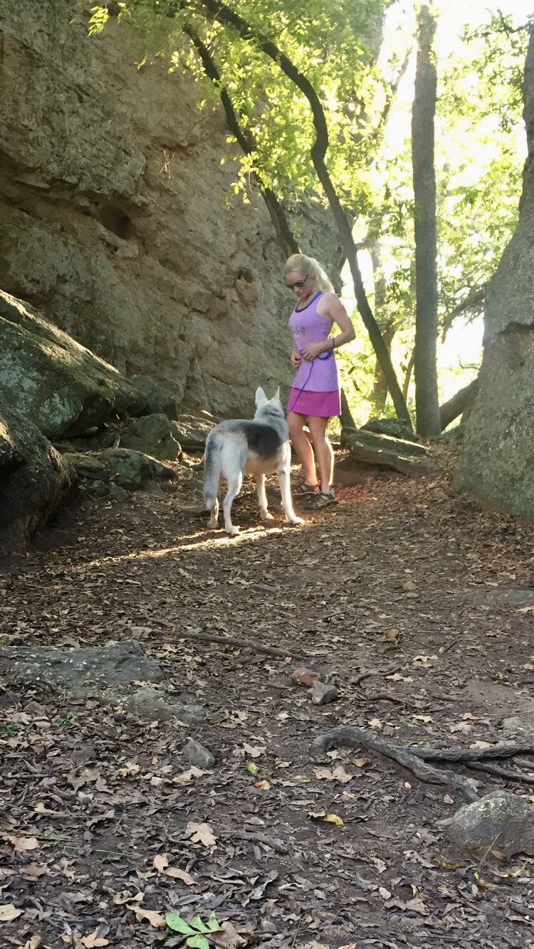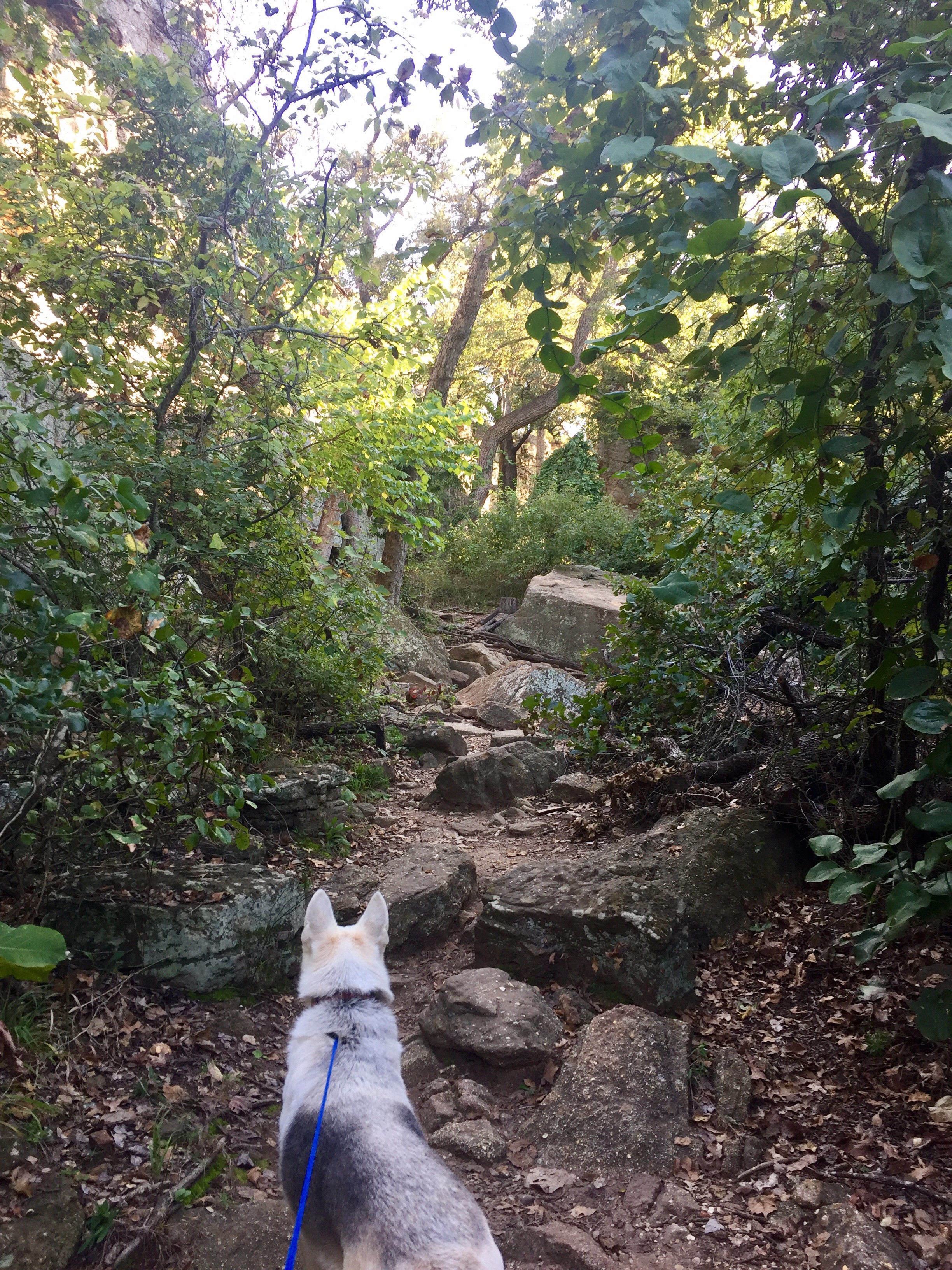It was another fantastic day in Texas so I called Lake Mineral Wells State Park to check on the trail conditions and to my delight the back country trails were open for business.  Aleu and I made the drive to get some dirt under our nails and burn off some of her seemlessly never-ending energy.  I decided to try wearing one of those athletic skirts with the little shorts underneath and was pleasantly surprised how comfortable hiking like a lady could be, so if you are on the fence about hiking in a pink skirt I recommend you go for it!  The day was warm and sunny and the trails still had some mud for Aleu to enjoy and my Jeep seats to be adorned with.  I only saw one other hiker out there all day but plenty of people were out riding their horses and enjoying the lake.  I heard a bunch of guys hollering in delight at the fish they were catching. This place really has a lot to enjoy, even a beautiful area to rock climb which is pretty rare so close to DFW.  There are miles and miles of trails that vary from easy to challenging with some beautiful views.  I highly recommend getting out there and adding some years to your life in this beautiful place, and feel free to do it in a skirt.  Keep it wild and classy.